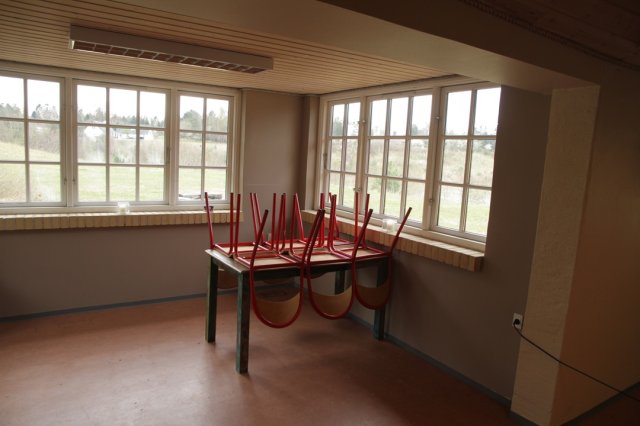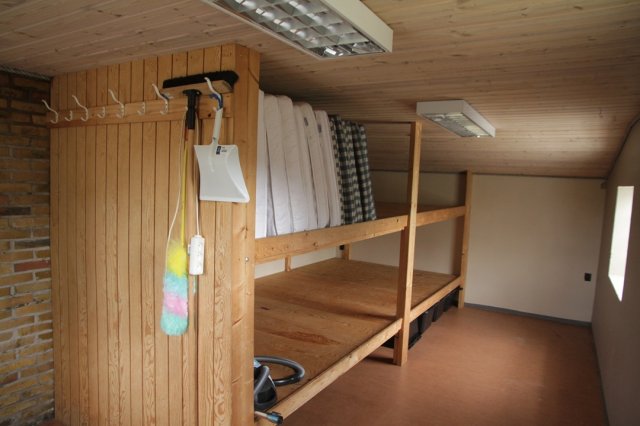 I sovesalen er der et anretterbord. På den anden side af døren er storrummet. Køjerne er til højre herfor.